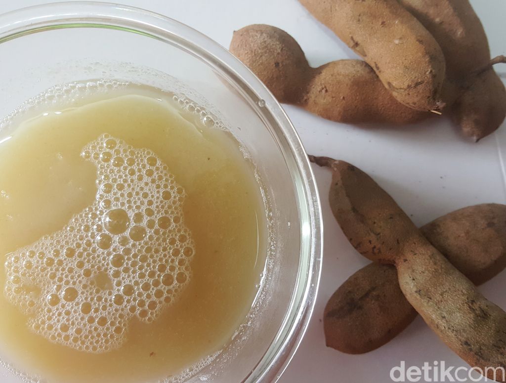 - Dalam panci terpisah, rebus asam muda dengan sedikit air hingga lunak. Angkat, remas-remas, saring airnya sekitar 100 ml.